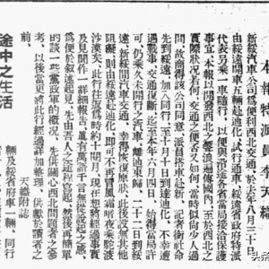 编者按 1933年8月,新绥汽车公司派6辆汽车由呼和浩特驱车前往乌鲁木齐,以开发两地间的路线。那时“开发西北”之声浪遍传国内,但是西北边疆的实际状况如何,却少有人过问。于是《大公报》记者李天织一同前往,并将前后十个月的经历和见闻写成一份详细的报告。 他们一路风餐露宿,途中不仅要面对恶劣的自然环境,还有土匪抢劫等危险。到达新疆后 ...