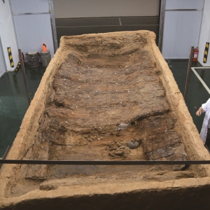 今天,在太原市博物馆的地下一层,考古人员将一个巨大的棺椁运到了这里,把这里作为实验室发掘的地点。因为这里具备恒温、恒湿、恒定的发掘条件,再有就是,这里警备森严,无关人员根本进不来。这个巨大的墓棺长5.45米,宽2.6米,重50吨,个头虽大,但它仅是整取自太原市悦龙台西汉代国王陵的祔葬墓。葬在这个大家伙里的人是谁?棺椁里随葬着什么样的宝物 ...