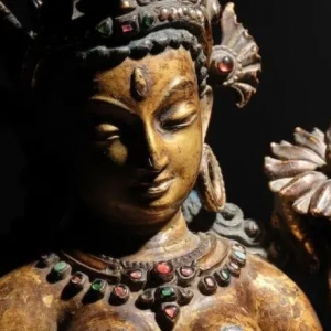 2022年3月22日 · 纽约邦瀚斯:印度、喜马拉雅和东南亚艺术https://www.bonhams.com/auction/27510/lot/305/a-gilt-copper-alloy-figure-of-green-tara-nepal-early-malla-period-13th-century/ LOT 305 尼泊尔马拉王朝早期 十三世纪铜鎏金绿度母像H 9 in. (2
