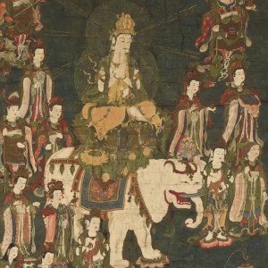 我国现存的五代佛寺壁画仅余山西平顺大云院一处区区21平米的作品了。然而就艺术水平而论,国内硕果仅存的大云院壁画较之早年流失海外的河南温县慈胜寺作品,又是判若云泥。这批代表存世五代壁画最高水准的艺术珍品曾一度为著名古董商卢芹斋珍藏于其在巴黎的寓所中,直至垂暮之年卢某才渐次出让捐赠了这批古代绘画杰作。 慈胜寺壁画观音坐像213.36× ...