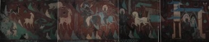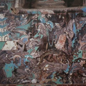 在古代南印度一个叫憍萨里的王国里,有五百强盗占山扎寨、开仓夺粮,与官府分庭抗礼、称雄一方。各级官府虽多次用兵,但终未获胜。后来,告急的奏章纷纷飞送到都城,国王闻奏先是惊慌,后是恼怒,立即选派了骁将精兵前去镇压。第285窟五百强盗成佛图(前半部分)奉旨前往征剿的官军声势浩大,不但将悍兵勇、装备精良,连战马也披挂着甲胄,刀箭难伤。相形之下,众强盗既无坚甲利刃,更无能征惯战之马。因此,在一场惨烈的激战之后 ...