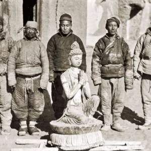 19世纪90年代末至第一次世界大战爆发,中国和中亚的大部分地区,成了相互竞争的国家开展艺术探险的决斗场。他们来到中国,从洞窟、宫殿和画商的密室里搜刮艺术珍品,盗走了雕塑、家具、瓷器、书画等大量国宝……在广为人知的古丝绸之路,欧洲和日本的探险队携带最先进的探测和照相器材,开始在中国西部细细梳理。 有关那些探险队收获的出版物,促使福格艺术博物馆跃跃欲试。1922年,兰登·华尔纳发表声明:“英国人、法