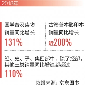 核心阅读 近年来,不论实体书店还是网络书店,古籍类图书品种增多、销售加速正在成为趋势。受高考改革、教材改编影响,热销的多为面向青少年特别是学生读者的普及类古籍。在众多版本的激烈竞争中,把书做成精品,为青少年读者提供最适合的产品,古籍出版才能健康持续发展。 2018年,国学普及读物的销量同比增长131%,古籍善本影印本的销量同比增长近200%,经、史、子、集四部中,除了经部,其他三类销量同比增速都超 ...