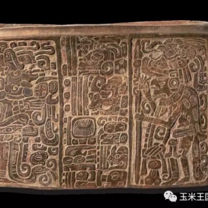 多件展品都表现了玛雅重要神祗卡威尔(K’awil)的形象。非常精彩的大陶盒上,有此神的全身像,最明确的标志包括:额头喷出的燃烧的分叉火炬,火炬根部或额头上表示“光明”的符号,向上勾的长鼻,鼻下像蛇信子一样的长舌,一足为蛇形,还有旋目这一神灵的通用标志。在一件线绘陶杯和一件线绘陶盘上,有卡威尔的半身像,火炬被表现得特别夸张,几乎环绕整个画面。另有两件减地浅浮雕陶杯,一件表现的是水莲花缠绕的冥界之中的 ...