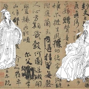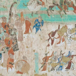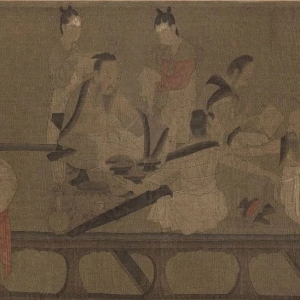 此宋摹本《北齐校书图》卷旧传为唐阎立本所作,现多认为原是北齐画家杨子华所绘。此卷所绘内容为北齐天宝七年文宣帝高洋命樊逊等人校勘内府所藏图书的历史事件,其后有范成大、陆游、韩元吉、郭见义、谢谔等人题跋。此卷现藏于美国波士顿美术馆。《北齐校书图》是一幅有历史史实内容的纪实性图卷,所画的是北齐天保七年(公元556年),因为“时秘府书籍纰缪者多”,北齐文宣帝高洋(也是他下令开凿响堂山石窟)“诏令校定群书,