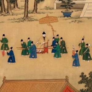 《兰亭修禊图》卷为明代画家钱榖绘。画作题材取自东晋王羲之《兰亭序》,描绘东晋永和九年,王羲之、谢安等人在浙江山阴的兰亭溪上修禊,作曲水流觞之会的故事,卷前有王榖祥题「蘭亭修禊」,卷后有钱榖书《兰亭序》及集诗。此卷现藏于美国大都会艺术博物馆。钱榖(1508—1579)字叔宝,自号罄室,吴县(今江苏苏州)人,明代画家。特别声明:文章所有图片全部来自台北故宫博物院,不作商业用途。查看更多文博资讯,请