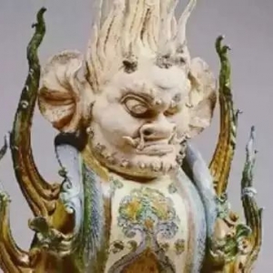 镇墓兽是古人为了祈求墓葬平安,保护死者灵魂不受侵扰,防止墓葬被盗掘而制造出的一种怪兽。有兽面、人面,鹿角等造型。《周礼》中曾记载有一种怪物叫魍象,好吃死人肝脑;又有一种神兽叫方相氏,有驱逐魍象的本领,所以人们常令方相氏立于墓侧,以防怪物的侵扰。所以有学者认为,使用镇墓兽的习俗,就是从“方相氏”的传说演化而来的,其主要兴盛于魏晋至隋唐时期。镇墓兽起初造型简单,越往后造型越是复杂,而面目狰狞则是大多数