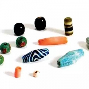 我国最早出现的琉璃制品要算是作装饰用的珠类了。从地下发掘的情况来看, 西周时期用于殉葬的琉璃品也主要是各种圆珠、管状珠和作镶嵌用的琉璃片。这些琉璃珠在墓葬中或单个出现, 或同玛瑙、松石等珠子混串在一起, 它们是当时的贵族戴在头部、颈部的饰物。这些情况表明, 当时琉璃珠生产的数量还不是很多, 人们把它和玉石类的珠一视同仁, 并不分什么真假。 从战国到西汉, 我国琉璃产品的品
