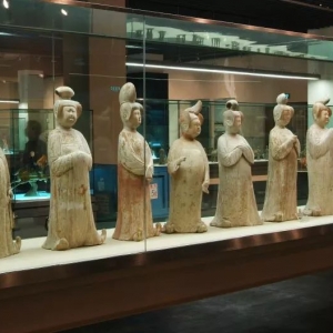 自古以来,中国就有“环肥燕瘦”的说法,“燕瘦”指的是汉成帝时的赵飞燕,苗条轻盈,能够掌上起舞;而“环肥”指的是唐玄宗时的杨贵妃,珠圆玉润、雍容华贵。在西安博物院的陶俑展厅,有一组唐代仕女俑十分抢眼。这组女俑共有十三件,最高的有86厘米,最低的也有71厘米,比一般常见的女俑都要大了很多,她们千娇百媚,安静恬然而大气,富有唐代女性独有的气质。▷唐代彩绘仕女俑(公元618年-907年),1987年出土于