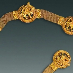 古代腰带不仅具有束腰的功能,也能突显男性服装阳刚硬朗的特点,此外,腰带也是古代等级地位的标志,关乎社会认可的价值与声望。男性腰带尺寸宽大,精致但不过分细巧,加宽腰带尺寸会使得穿着者显得洒脱不羁,皮质腰带的纹路、色彩和金银装饰、珠宝点缀更是男性形象鲜明的标识。从世界各地来看,各种材质的腰带种类繁多,其中金银腰带无疑是等级最高的标志物之一,也具有文化交流传播的意义。本文探讨的阿富汗大夏黄金之丘金腰带与