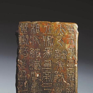 秦始皇二十六年铜诏版(镇原县博物馆藏)镇原县博物馆馆长 王博文文物档案秦始皇二十六年铜诏版长10.8厘米,宽6.8厘米,厚0.3厘米,重150克。其上阴刻秦始皇二十六年,即公元前221年,统一度量衡的诏书:“廿六年,皇帝尽并兼天下诸侯,黔首大安,立号为皇帝,乃诏丞相状、绾,法度量则不壹,歉(嫌)疑者,皆明壹之”。五行四十字,秦篆,青铜铸造,字迹清晰,线条纤细,弥足珍贵。诏书中的“二十六年”即公元前221年,是秦始皇统 ...