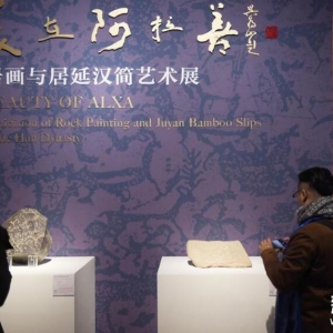 当日,“美在阿拉善——岩画与居延汉简艺术展”在北京中国美术馆开幕,共展出岩画实物、雕塑、拓片、汉简等共计100多件。 新华社记者 鲁鹏 摄11月21日,观众在中国美术馆参观“美在阿拉善—岩画与居延汉简艺术展”。11月21日,观众在中国美术馆拍摄展出作品“唐石人像”。这是在中国美术馆展出的展品“西夏骑者与骆驼岩画”(11月21日摄)。11月21日,观众在中国美术馆参观“美在阿拉善—岩画与居延汉简艺术展”。