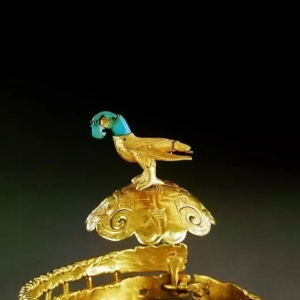 匈奴金冠 综 述 中国的北方是一片草原,鄂尔多斯是位于中国北方草原的一片神奇的土地,大概三千多年前,随着气候的演变,这里出现了游牧部族。薰育、鬼方、玁狁、戎狄、东胡、匈奴、鲜卑、突厥、契丹、党项、女真,他们在历史前进的车轮中,交替上演了一幕幕威武雄壮的故事。这些游牧部族对中国文化的形成和发展,包括对中华民族的形成和发展,都作出了巨大的贡献。 而今这些雄风壮烈的古代游牧民族,大都在