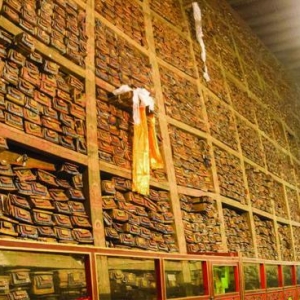 来源:收藏快报 萨迦寺藏书萨迦寺藏书 哈着腰穿越主殿中一个小小的通道,等我们直起身来时,已惊讶得不能言语:神佛们的背后隐藏着一个神秘的所在,有如幽深的时光隧道,壁立而起的,是一面硕大的经墙!这面墙全由一格一格的经书堆砌而成,粗粗测量一下,高约9、宽约60多米!仿佛万里长城的一截飞身来此,掩埋下无数的智慧与情感。 一共是84000部!一千年的时间里,就在这萨迦寺里,一代又一代的僧人持笔蘸 ...