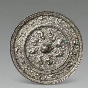 双鸾开镜似秋光,解鬟临镜立象床。”——唐·李贺 《美人梳头歌》铜镜是古人梳妆整容的生活必需品,以铜、锡等铸造而成,有圆形、方形、花瓣形、柄形等多种形式。铜镜的正面光亮,可用来装饰整容,背面有钮和花鸟禽兽图案,具有很高的实用价值和艺术价值。我国是世界上最早铸造和使用铜镜的国家之一,唐朝则是铜镜制作的繁荣期,其中海兽葡萄纹铜镜尤其具有代表性,其造型优美、纹饰奇特、内涵丰富,彰显着大唐的盛世气象。地位