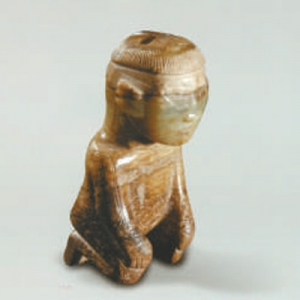 殷墟横跨洹河两岸,自1928年以来,考古学家已在这里发掘出丰富的殷代文化遗存。妇好墓位于殷墟中心小屯村北略偏西百米处,宫殿宗庙遗址的西南侧,规模中等,未经盗掘,随葬器物极为丰富。根据地层、随葬器物形制、铭文及其与甲骨卜辞的参考比对,发掘者认为此墓属于商王武丁的王后妇好,庙号称“辛”。妇好墓出土短辫玉人。 妇好墓中曾出土一件短辫玉人(编号M5:372),高8.5厘米,黄绿色斑驳玉质,双手抚膝,呈跪坐姿势。 ...