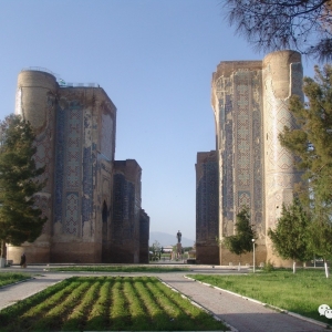 沙赫利苏伯兹历史中心位于乌兹别克斯坦南部的丝绸之路上,拥有2000多年的历史,是14世纪和15世纪凯许地区的文化和政治中心。阿克萨莱宫(字面意思为“白宫”)建造始于1380年,也就是帖木儿征服花剌子模之后的一年,驱遣当地工匠为其建造宫殿、雕琢丰富精美的装饰。尽管撒马尔罕城拥有许多帖木儿时期的古迹,但没有一处可以与阿克萨莱宫媲美。其巨大的宫门地基得以留存:这个建筑杰作,无论是从建筑的规模,还是大胆的