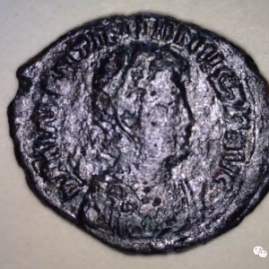 窖藏中的其中一枚钱币,历史可以追溯到公元378年到383年,罗马皇帝瓦伦提尼安二世(Valentinian II)执政期间,铸造于安提俄克(Antioch)。日前,考古学家们在位于希腊科林斯(Corinth)的海港附近一处倒塌的建筑内发现119枚钱币和一把铁锁,据考古学家们猜测,这堆钱币可能原本被保存在一个箱子当中,并上了锁。这个发现让考古学家们很疑惑,为什么在建筑物倒塌之后没有任何人来回收这些钱币?“这个问题提得很好,我们一直很困 ...