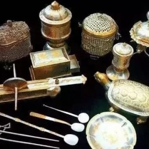 1987年,陕西扶风法门寺地宫出土了一套唐代宫廷茶具 1981年8月24日中午10时24分,连绵的阴雨让历经了400多年风雨的法门寺明代砖塔轰然坍塌半壁。 而剩下的西南一边虽然出现倾斜,却仍然神奇地矗立着。 1986年春天,政府决定拆除残塔。同年12月,陕西省人民政府决定重建法门寺真身宝塔。 由于原来的塔基被地震、地下水破坏,建造新塔之前必须重打地基。省文物局组成考古队负责重建前的