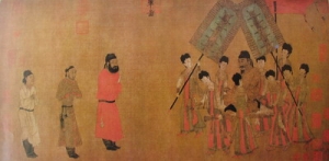 北京故宫博物院收藏的《步辇图》,是一幅最早反映中国汉、藏团结和睦的历史画卷,它真实地记录了1300多年前唐王朝文成公主和西藏松赞干布的联姻佳话。《步辇图》展示的,正是唐太宗李世民于贞观十五年,也就是公元641年接见吐蕃松赞干布使者禄东赞到长安迎接文成公主入藏时的情景。《步辇图》是中国十大传世名画之一。绢本,设色,纵38.5厘米,横129.6厘米,为唐代著名画家阎立本所绘,作品设色典雅绚丽,线条流畅圆劲,构图错落富 ...