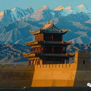 河西走廊一路辽阔悠远,但到了嘉峪关,陡然变得狭窄了起来。左侧是巍然屹立的祁连山,山体凌空万仞,巍峨入云,堆琼垒玉绵亘千里,如同一条游动的玉龙,在深蓝色山峰的衬托下熠熠闪光。右侧是雄浑伟岸的马鬃山,山体峥嵘万叠,险峻奇绝,山体形状极像奔腾万里,昂首长嘶烈马的红鬃,山头一律呈红褐色,荒凉而又充满了活力。如果说祁连山是一位冰清玉洁的藏族女子的话,那么马鬃山就是一个粗旷豪放的蒙古汉子了。两山遥峙,不怒而威 ...