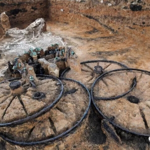 这辆有着2000年历史的木制战车被埋在两匹马和一条狗的尸体附近,一同埋葬的还有色雷斯(现在的保加利亚)贵族。这张战车被埋在两匹马和一条狗尸体附近的照片迅速上了今日红迪网(10月13日)的头条,已超过65000点赞。但是为何这个发现令人如此激动?又是谁埋葬了这辆战车?由韦塞林伊格纳托夫带领的考古学家小组于2008年发现了这辆有着2000年历史的木制战车。战车覆盖着青铜,车身装饰了罕见的色雷斯神话场景。战车的时代并不确定 ...