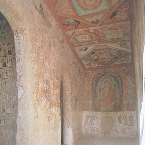 禅定佛像-莫高窟第259窟敦煌与敦煌石窟概况敦煌位于中国甘肃省河西走廊西端,属典型的暖温带干旱性气候。东有三危山,南有鸣沙山,西面是沙漠与罗布泊相连,北面是戈壁,与天山余脉相接。在敦煌盆地中,党河冲积扇带和疏勒河冲积平原,靠积雪融水和地下水的滋润,形成一块宝贵的沙漠绿洲。敦煌很早就有人类的活动,最迟在青铜时代,以四坝文化为代表的原始文明就已经出现,并以天然优越的地理位置开始充当东西文化交流的通道。张骞 ...