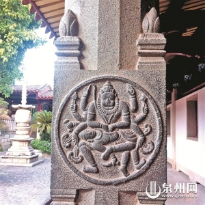 吴幼雄正在为记者示意海陆丝线路走向。 开元寺大雄宝殿后回廊的这对印度教石柱,为从海路而来的犍陀罗式雕刻艺术。它们同陆路来的犍陀罗式石雕、碧霄岩摩崖三世尊佛浮雕一道,说明了海陆丝文化在泉州交融汇合。 “泉州不仅是古代海上丝绸之路的起点城市,还是宋元时期海陆丝文化的交汇点。”经过多年研究考证,泉州文史研究者、《泉州宗教石刻》作者之一吴幼雄日前又有成果。他说,这一论断既可以从史料的记载中得出,也有实 ...
