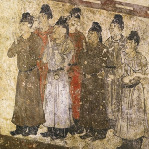 唐代女子除女着男装外,其主要服装样式是襦裙服。一般为上身着短襦或衫,下着长裙,有的还搭配帔帛,或者在外面套上半臂,足穿凤头丝履或线鞋。 唐代女子所穿的襦有各种各样的领口,有圆领、方领、鸡心领、斜领,颜色以红色居多,也有白色、青色和黄色等,唐代初期女子所着的襦一般为窄袖。中唐之后,襦或衫的袖不断加宽。盛唐时,还出现了袒领短襦,这样大胆的着装可谓是这时的一大特色。山西太原南郊金胜村太原化工焦化厂 ...