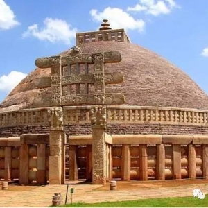 第一建筑史 印度桑奇大塔 佛舍利塔的建筑,在佛教界,是不分地区与部派的。经过长时期的演化,塔形成为多姿多采的塔的形态,依律部所传,已有部派的色彩,但还可以了解出原始的形态。《摩诃僧衹律》卷33说:“下基四方,周匝栏楯。圆起二重,方牙四出(“塔身”)。上施盘盖;长表轮相”。《僧衹律》所传的佛塔,是“塔基”、“塔身”、“盘盖”、“轮相”——四部分组成的。 《根本说一切有部毘奈耶杂事》卷18说:“佛言:应 ...