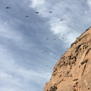 敦煌!敦煌!画卷与史诗 9月26日。第十天。敦煌。32公里。 早晨七时三十分出发。事实上可以再晚一些,因为预约时间是八时四十五分。不消十分钟便到了莫高窟数字中心。根据院方安排,先看两个短片,然后乘坐区间大巴往莫高窟,大约还有十五公里的路程。现在讲解员采用驻窟形式,集中人数依次参观,旺季可以看八个窟,淡季则为十二。此外还有特窟,粗略算了算,如果全部下来,至少几千元。我们来的季节显然是旺季,也只好看多 ...