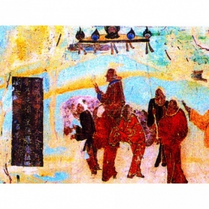 莫高窟第390窟位于南区北侧二层,主室为覆斗形顶,西壁开龛,平面方形,东西进深6米、南北6.2米,这是一个较大的洞窟。学术界一致认为该窟为初唐早期洞窟,但在考古分期上划入隋窟。该窟壁画题材奇特,供养人像多达98身(不含侍从)。男供养人像始于西壁龛下北侧至北壁,前三身为引导僧,后面为世俗人物,第10身一主四从,氅服,捧花盘,题名是:“囗囗囗囗幽州总管府长史囗囗囗囗囗囗(一心)供养”(《敦煌莫高窟供养人题记》录 ...