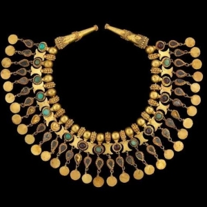 古代阿富汗的超美金饰,在阿富汗北部的黄金之丘(Tillya yepe)出土了2万件黄金装饰品~大部分是公元前100年制作,包括黄金的匕首,头冠和腰带等,异常美丽~