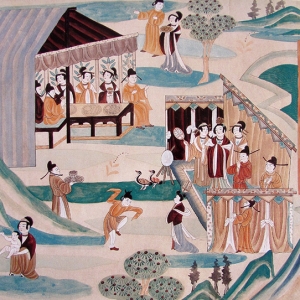 来源:杨雪 北庭文博 高平开化寺西壁壁画中,有一部分完整地展现了善友太子本生《如意珠》的故事。从善友太子出生到观四事,从出海求宝历经磨难到安然返回造福众生,图像场面多、面积大,故事性强,密而不乱,虽处同一平面却有立体感。高度写实,比清明上河图的难度还大,世俗的一面与经变故事结合得非常出色。国王祈愿,太子降生走访民间,体察疾苦太子观耕图左侧绘一着交领广袖袍,骑在马上的年轻男子,周围立六随从,分别持伞 ...