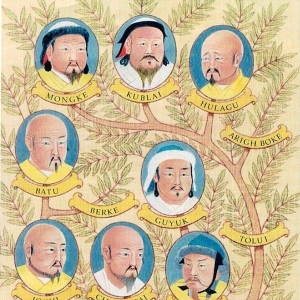 蒙古帝王世系图 细密画(miniature)是波斯艺术的重要门类,是一种精细刻画的小型绘画,主要用于书籍的插图和封面、扉页徽章、盒子、镜框等物件上和宝石、象牙首饰上的装饰图案。细密画一般画于羊皮纸、纸或书籍封面的象牙板或木板上,题材多为人物肖像、图案或风景,也有风俗故事,多采用矿物质颜料,甚至以珍珠、蓝宝石磨粉作颜料。 成吉思汗和他的儿子窝阔台和术赤 窝阔台大汗加冕礼 拖雷和他的王后唆鲁 ...