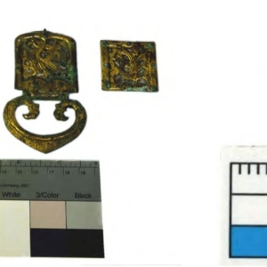 一、引言 2004年,大同市城南交通苑北魏墓群出土了一件异常精美的鎏金铜带銙,由1件带扣、2件带銙环、1件方形带銙片组成。在人类社会发展的历程中,带具作为基本的服饰用品不仅具有束缚衣物的实用功能,而且还具有装饰作用以此来彰显身份地位。以带扣为主的带具组合主要包括带扣、带銙、带鞓、䤩尾,带具均连缀于带鞓之上,带鞓两端分别连接带扣和䤩尾,是 ...