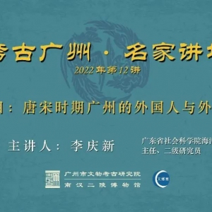 2022年12月7日下午,广东省社会科学院海洋史研究中心李庆新研究员应广州市文物考古研究院邀请做了题为《唐宋时期广州的外国人与外侨社区》的讲座。此次讲座是“广州考古·名家讲坛”系列2022年第12讲,也是“只此绚丽——广州出土汉代珠饰展”配套学术活动。讲座由易西兵院长主持,采用线上方式,通过广州市文物考古研究院微博平台、文博圈微信公众号 ...