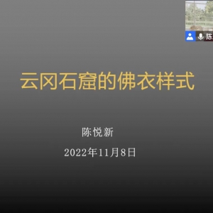 2022年11月8日晚,“纪念宿白先生诞辰一百周年——石窟寺考古系列讲座”的第八讲在线上平台举行。本次讲座的题目为《云冈石窟的佛衣样式》,主讲人为北京联合大学应用文理学院教授陈悦新,由北京大学考古文博学院教授、云冈研究院院长杭侃主持。图1:线上讲座截图 云冈石窟的佛衣样式特点鲜明,变化显著。自20世纪40年代起,已有学者开始云冈石窟佛 ...