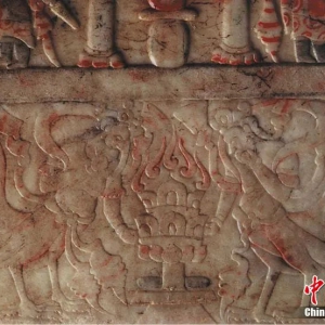 1999年7月8日,一场大雨过后,山西省太原市晋源区王郭村村民王秋生拿着铁锹修理被大雨冲毁的墙基路面。铁锹碰到一个硬物,且这硬物越挖越大,直到露出一个石质屋顶,震惊海内外考古界的虞弘墓就这样发现了。 这是一座有着准确纪年的隋代墓葬。葬具是房型汉白玉石堂,石堂内外,或雕或绘精美图案54幅,局部还有描金装饰。图中人物皆深目高鼻,或留短 ...
