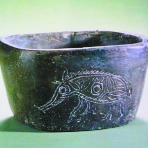 1977年冬,在浙江省余姚县河姆渡文化遗址出土一件编号为T243④:235的陶钵。这件陶钵形体硕大,口大底小;平面为椭圆形,深腹,平底,通体呈黑灰色;外壁两侧各刻一个形象逼真的“猪形图像”,在“猪形图像”的腰间,还特意标出了圆形的星饰。该陶器口长21.7厘米、宽17厘米,底长17.5厘米、宽13.5厘米,高11.7厘米。考古发掘报告将这件陶器命名为“猪纹 ...