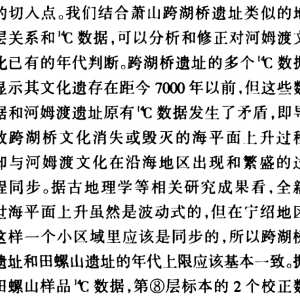 浙江余姚田螺山新石器时代遗址2004年发掘简报(下)浙江省文物考古研究所余姚市文物保护管理所河姆渡遗址博物馆链接:浙江余姚田螺山新石器时代遗址2004年发掘简报(上)浙江余姚田螺山新石器时代遗址2004年发掘简报(中)六、结语近年来,在宁绍地区西部、南部和金衢盆地边缘的浦江小盆地,相继发现和发掘了跨湖桥2上山以小黄山l等重要遗址,出土了约距今