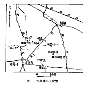 陕西长安县小苏村出土的铜建筑构件 朱捷元 黑光 1974年1月,在长安县纪阳公社小苏村附近发现一批铜建筑构件(图一)。原物是在该村东南100米处的黄土坑内出土,距地面深为1.6米。和铜构件同出的还有秦代绳纹瓦残片等。小苏村在西安三桥镇的西南3公里,东南距阿房宫遗址中心的阿房宫村有1.5公里左右。小苏村南1公里为大古城村,在大古城村及其东面 ...