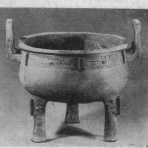陕西临潼博物馆新征集的青铜器 《文物》1982年09期 陕西临潼县博物馆近年征集到若干青铜器,择要介绍如下。 饕餐纹铜鼎一件。通耳高21.5、口径17、腹深7.5厘米。平沿,口呈椭圆形。方拱形立耳内敛,三柱足内收。器身作鬲形,矮平档明显。底上有烟熏痕迹。腹饰三组以云雷纹填底的饕餐纹。兽面两侧附饰夔龙纹(图一、二)。此器系1981年3月由马 ...