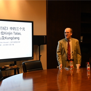 2019年11月11日至14日,国际著名蒙古学家、美国宾夕法尼亚大学东亚语言与文明系艾骛德(Christopher P. Atwood)教授应邀来到中国人民大学国学院讲学,进行了四次精彩的学术报告。艾骛德(Christopher P. Atwood)教授如何解读《马可波罗行纪》中的地名?11月11日18:00-20:00,第一场讲座在国学馆122会议室举行,题目为“《马可波罗行纪》中的三个元代行政单位:Kinǰin Talas (欣斤塔剌思),Silingǰiu(西宁州)及 Kun .