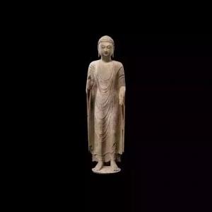 北齐时代(550——577),由文宣帝高洋取东魏而代之,高齐政权是鲜卑化汉人,反对北魏孝文帝以来的汉化政策,最后为北周所灭,前后共六帝二十八年。佛教石雕造像随着时间的演变与发展,从碑像的高浮雕、背屏式半圆雕到单体圆雕,北朝后期的北齐佛雕艺术,是继北魏之后,北朝佛教造像的另一高峰,亦是北魏至隋唐间重要的过渡时期。北齐石雕立佛盛行,背屏式造像减少,单体圆雕发展成熟,成为青州造像的主流,意味着佛像独立供