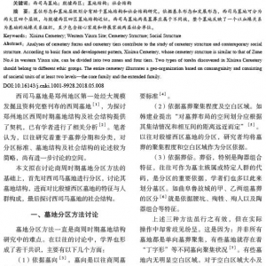 内容提要:以邰城汉墓为对象,对墓地形成过程、墓地结构进行了分析,认为汉初至宣帝前后,竖穴土坑墓、竖穴墓道洞室墓代表的两个族群,采用聚族而葬的族葬制,而在同一族群内部流行以夫妻为核心的家葬制。西汉末期及之后,墓地人群发生变更,家葬制进一步发展。对邰城墓地结构的研究,展示了关中地区西汉平民墓地的面貌,为进一步探讨西汉墓地制度奠定了基础。此墓地结构研究方法亦可为其他地区的汉代墓地研究提供借鉴。