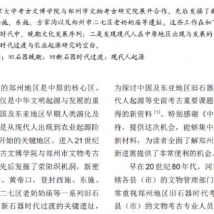 —————————————————————————————————————全文阅读从现代人出现到农业起源——郑州地区旧石器时代考古新进展(作者:王幼平 北京大学考古文博学院;顾万发 郑州市文物考古研究院;原文刊于《中原文物》2018年第6期)