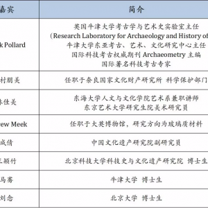 由西北大学文化遗产学院主办,西北大学科技考古学研究中心承办的“丝绸之路上古代玻璃的科技考古研究国际学术研讨会”,将于2018年12月8日在陕西省西安市西北大学召开。多国学者学子将齐聚古都西安,围绕丝绸之路上的古代釉砂制品和玻璃的技术、工艺与贸易等文化交流情况,共同参与此次学术研讨会议。嘉宾介绍会议议程时间2018年12月8日地点西北大学文化遗产学院二楼 第二会议室主办西北大学文化遗产学院文化遗产保护技术国家级实 ...