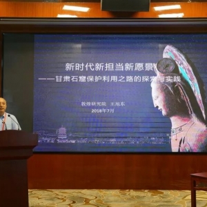 王旭东在论坛上发表主旨演讲 “麦积山国际雕塑论坛·2018”日前在甘肃天水举办,论坛以中国传统雕塑的融合与创新为主题,设有中国传统雕塑的审美特征、中国传统雕塑的形式语言研究、中国雕塑史与思想史研究、新时代下文化遗产的活化4个分论题,来自国内外的百余名专家学者参加了论坛。 “甘肃是石窟大省,具有特殊的自然地理条件,是古丝绸之路繁荣兴盛的一个非常重要的见证,可以说石窟见证了丝路文化的交融。”敦煌研