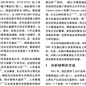 ——————————————————————————————————————————————全文阅读青海喇家遗址齐家文化时期粟作农业的植硅体证据(作者:王灿 中国科学院地质与地球物理研究所新生代地质与环境重点实验室;吕厚远 中国科学院大学;张健平 中国科学院地质与地球物理研究所新生代地质与环境重点实验室;叶茂林 中国社会科学院考古研究所;蔡林海 青海省文物考古研究所。原文刊于:《第四纪研究》2015年第1期 ...